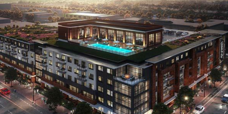 The Josephine is a residential wrap-around parking garage in San Antonio, Texas, enclosed by uniquely designed apartments and topped with a rooftop amenity level that overlooks the downtown skyline.